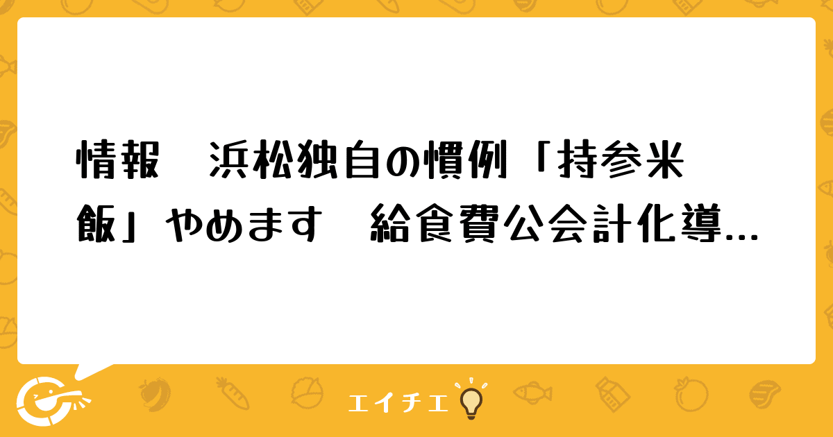 浜松市教育委員会は11日の市議会市民文教委員会で、1978年から現浜松市内の多くの小中学校で続けられてきた給食時の「持参米飯」を本年度末で廃止すると説明した。週1回、家庭から米飯を持参して給食のおかずと一緒に食べる市独自の慣例だった。2022年度から給食費を市内で統一し、市が一括管理する「公会計化」導入を機に廃止する。