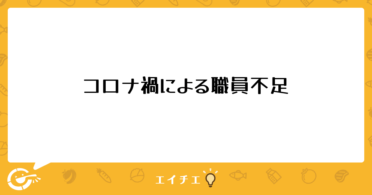 私は特養で働いているのですが、現在介護職員が5人欠員でさらに最近、介護士の家族がコロナの濃厚接触者にあたってしまい、それによりその介護士も2週間休暇を取るということで、6人欠員が出ている状況です。