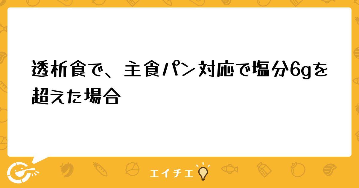 透析食で食欲不信のため本来はご飯のところを、主食をパンに変更して塩分6gを超えた場合は加算は取れないでしょうか。基本の透析食は、6g未満に設定です。透析食を提供しているある患者で主食をパンに変えて1ヶ月程塩分超えて提供していたことに気付きました。