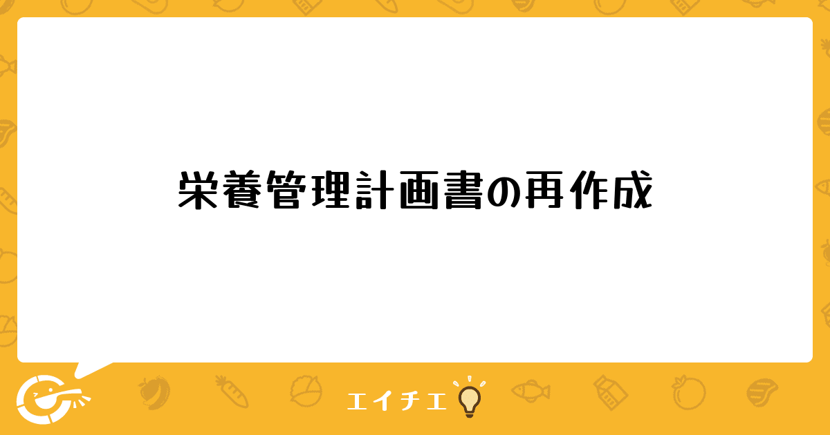 病院に勤務している管理栄養士です。現在、再評価の時期が来て、前回の栄養管理計画書に記載している食事内容が変更になった場合は再度栄養管理計画書を作成しなおしています。(普通量→ハーフ食+補助食品、常食→刻み食など…)食事内容が変更になった場合は、その都度カルテに記載はしているのですが、みなさんはどういった場合に栄養管理計画書を再作成していますか?