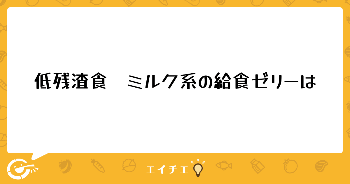 低残渣食の献立についてミルク系のゼリーは、使用していいことにするか悩んでいます。