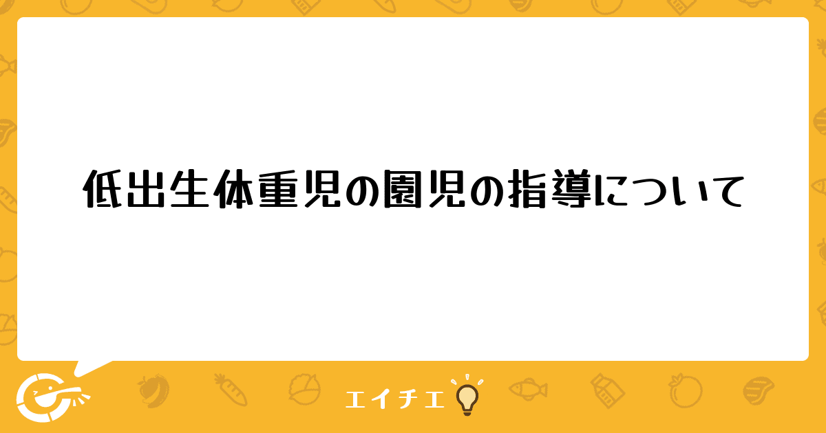 掲題の通り、低出生体重児の園児の指導について教えてください。