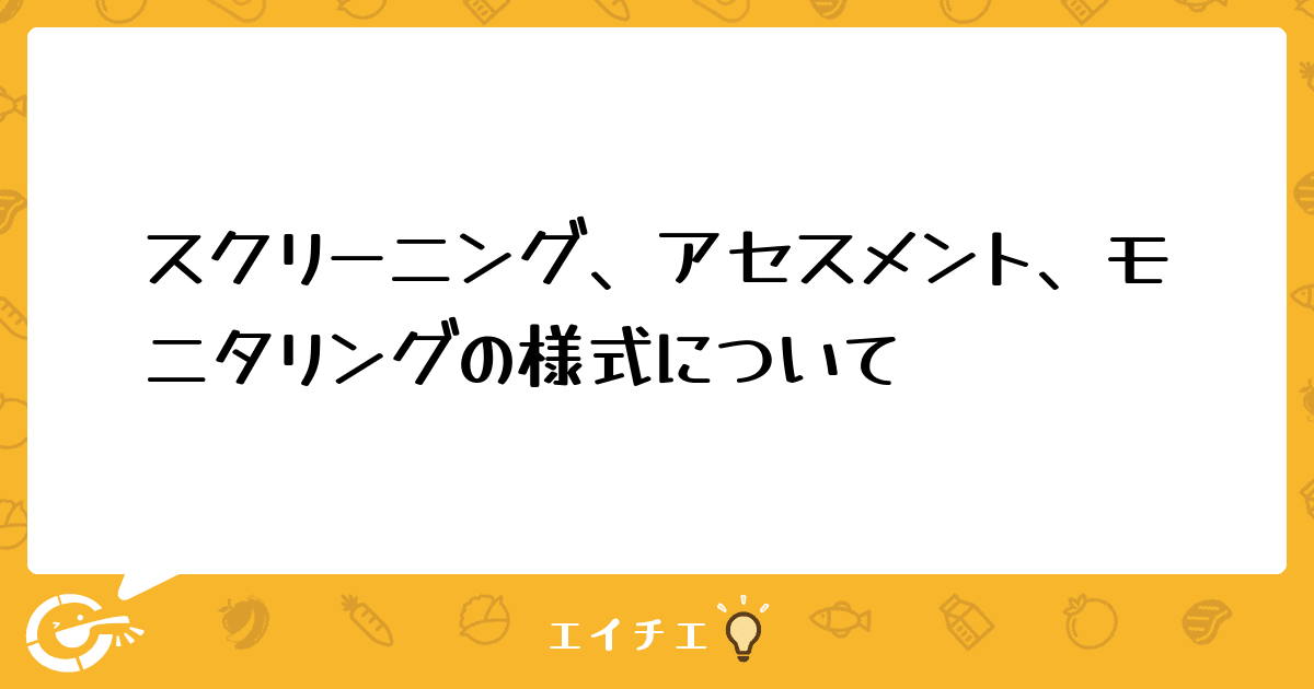 新様式の一体型のものをまだ使用しておらず、スクリーニング、アセスメントとモニタリングに分かれた前のものを使っています。
