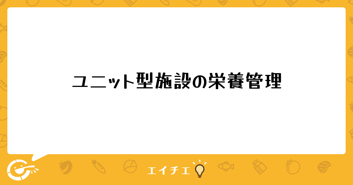 ユニット型施設の栄養士さんの意見を是非聞かせてください。