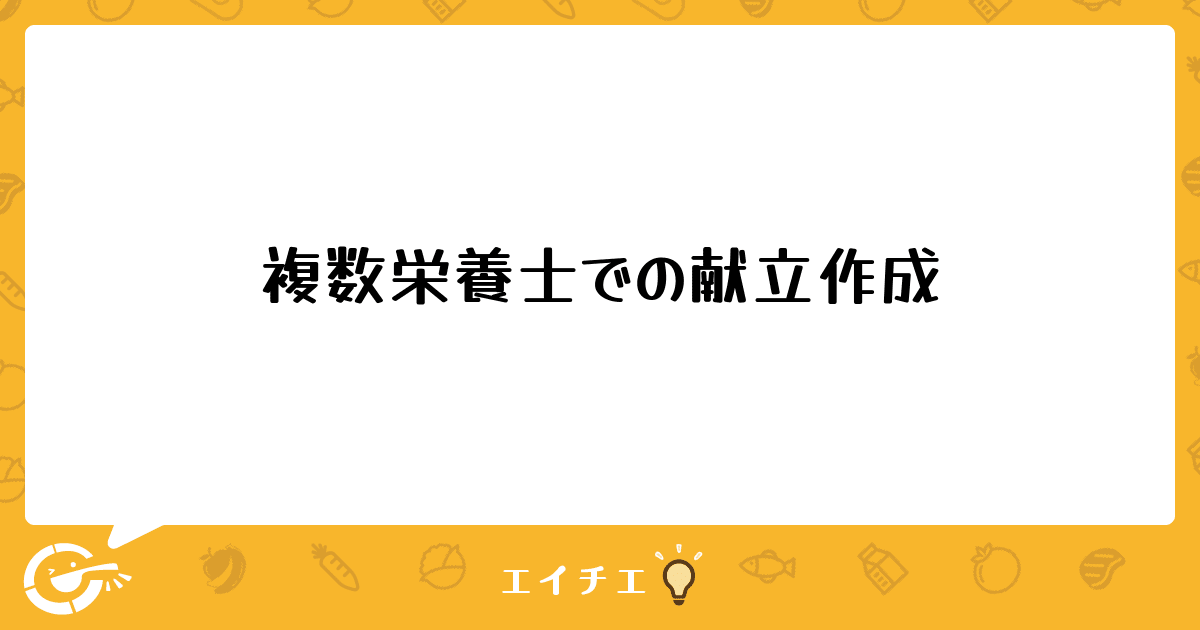 新卒時からずっと1人栄養士でやってきたので、複数栄養士で働いた経験がありません。