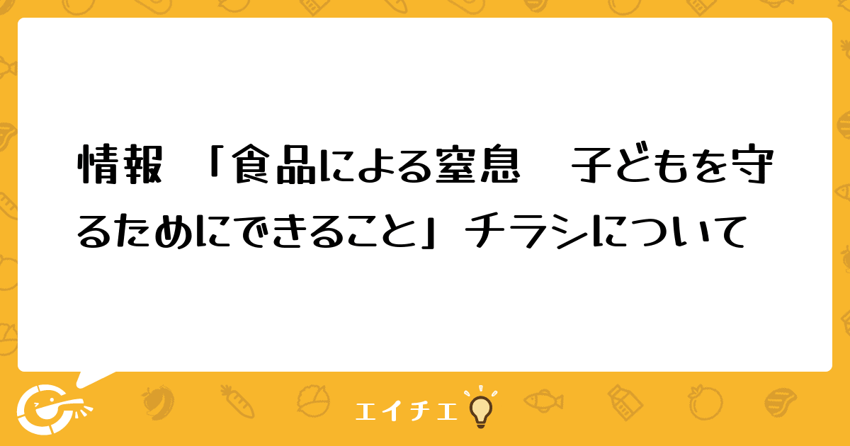 食品による幼い子どもの窒息は度々起こっております。知識を持つことで窒息事故から子どもを守ることにつながります。食品による窒息事故で尊い命が失われないことを願い、「食品による窒息 子どもを守るためにできること」を作成いたしました。