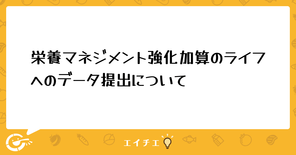 栄養マネジメント強化加算のライフへのデータ提出の件なのですが、頭が混乱してきました。