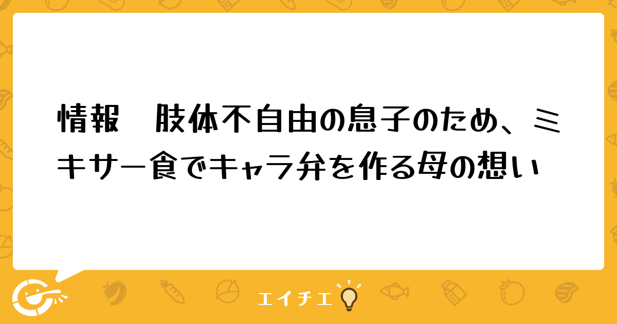 「言葉は通じなくても幸せ」嚥下障害を起こした肢体不自由の息子のため、ミキサー食でキャラ弁を作る母の想い