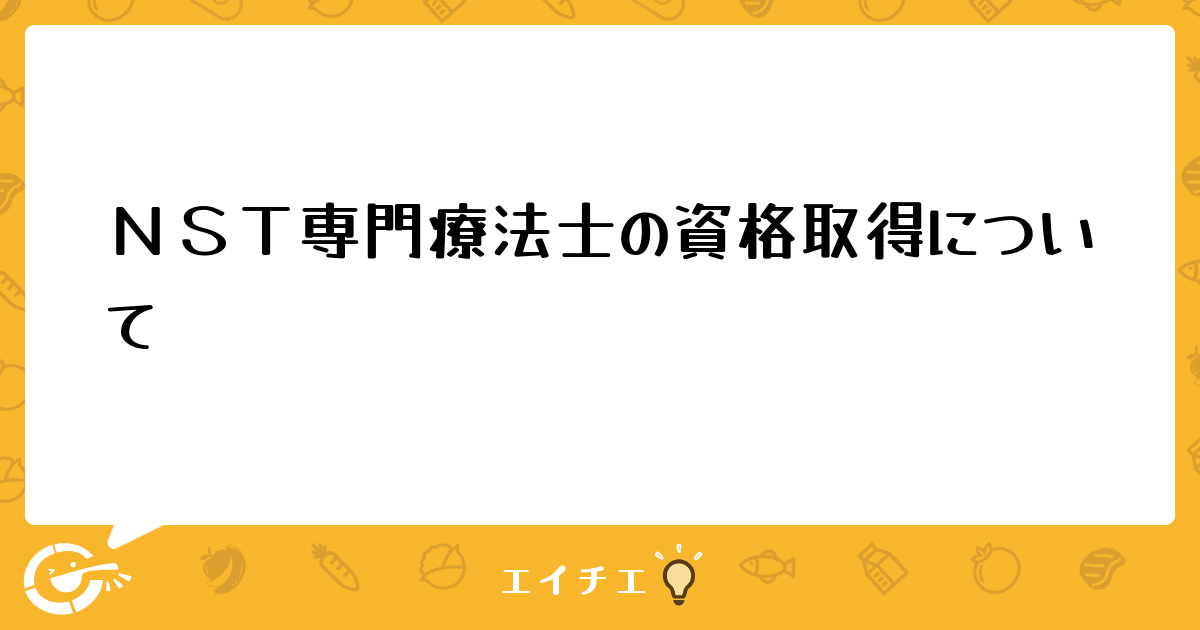 最近、NST専門療法士の資格に興味があり、福祉で仕事をしていますが、是非、取得したいと思っています。