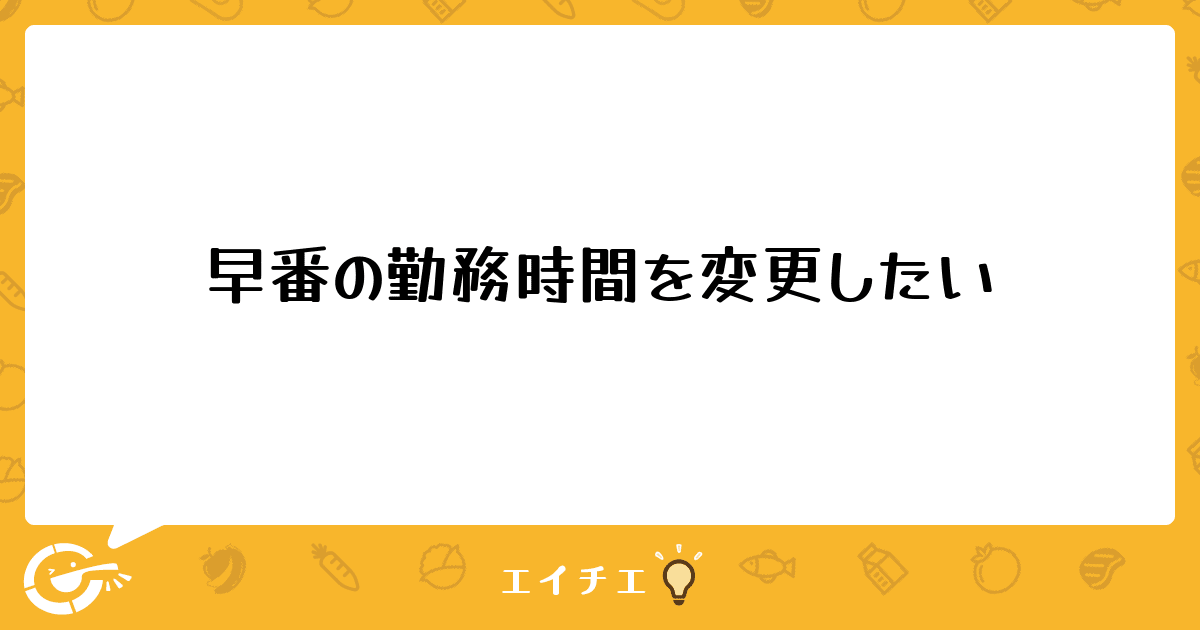 以前、「全粥が熱い」というタイトルで質問させて頂いた際、早番の出勤時間の見直しもしくは朝食の提供時間の見直しを指摘されましたが、あれからも個別対応が増え、これ以上受け入れられないと判断したため、上司に早番の勤務時間を7時15分~16時から7時~15時45分に変更して欲しいとお願いしました。