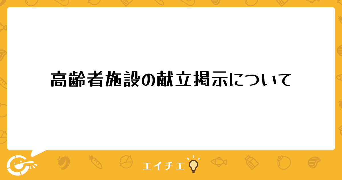 高齢者施設(特養)での、献立表掲示について質問させてください。