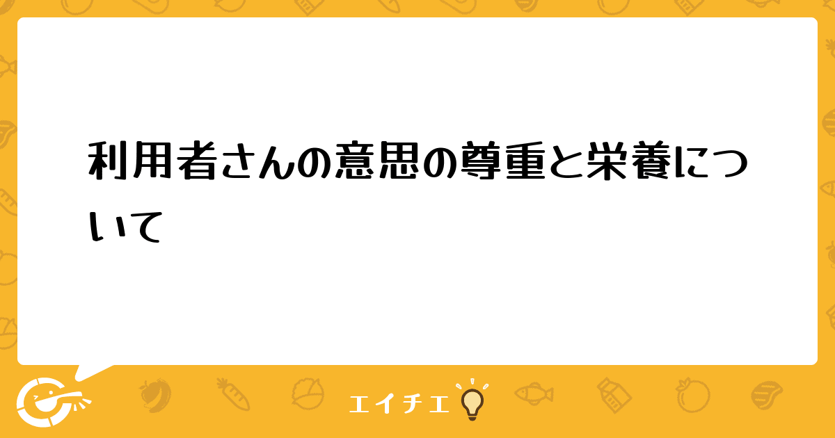 苦手が多いと思われる食材、例えば魚は、匂いのない白身魚や鮭を主に使ったり、調理方法も揚げたり、コーンクリームソースかけやニンニクバターソースなど、皆様が好む味付けにする、サラダや野菜炒めもハム、ツナ、卵等のたんぱく質やコーン等を合わせて、食べやすくするなどして、苦手を軽減し、完食に努めています。そして、食事の現場では、支援員さん達が、声掛けや励ましで、上手に完食をさせてくれていました。私も見ている限り、それほどの精神的負担なく食べられているように感じていました。そんな中、施設が虐待、不適切行為の防止の強化に取り組み始め「利用者さんの食べたくない、偏食に対し、無理に食べさせるのはどうか、自分がいいと思っていることの押し付けになっていないか。」を問われるようになり、利用者さんの意思の尊重をすべきでは。の風潮が高まり、あっさりのこすようになってしまいました。栄養マネジメントを行っているのですが、残したがったり、偏食がある利用者さんは痩せ気味でリスクのある方が多く、いままで標準範囲内で安定していたのに、偏食を尊重し始めてから体重の減少で中リスクにもなってしまっている利用者さんもいます。「バランスよく何でも食べる、完食する」ことは時代遅れなのでしょうか。私たち専門職は、その有効性を理解し、健康寿命の延伸だったり、QOLの向上等目標にむけて日々取り組んでいると思います。それを発言することは自分の思う良かれの押し付けと言われてしまうのでしょうか。利用者さんの意思の尊重と、栄養士からの思い主張のバランスを教えていただきたいです。よろしくお願い致します。