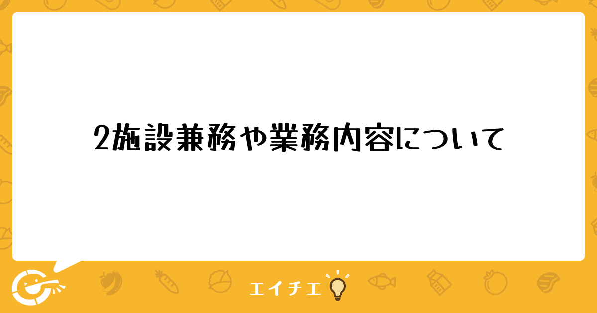 姉妹施設(会社は一緒ですが施設としては別)で施設管理栄養士を兼務をやられている方いらっしゃいますか?