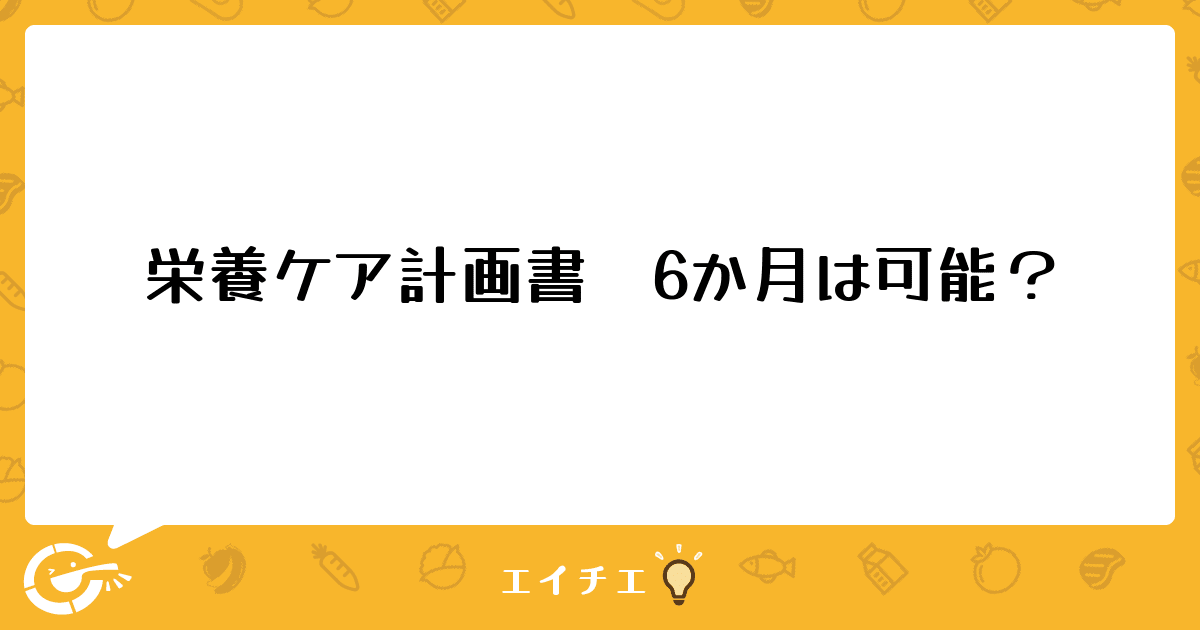前任の栄養士の方はケア計画書の期限の欄を半年で記していたのですが、(例えばR2.4.1~R2.10.1の様に)これは可能なのでしょうか?実地検査等では特に指摘されていないようです。また、ケアプランとは連動していません。