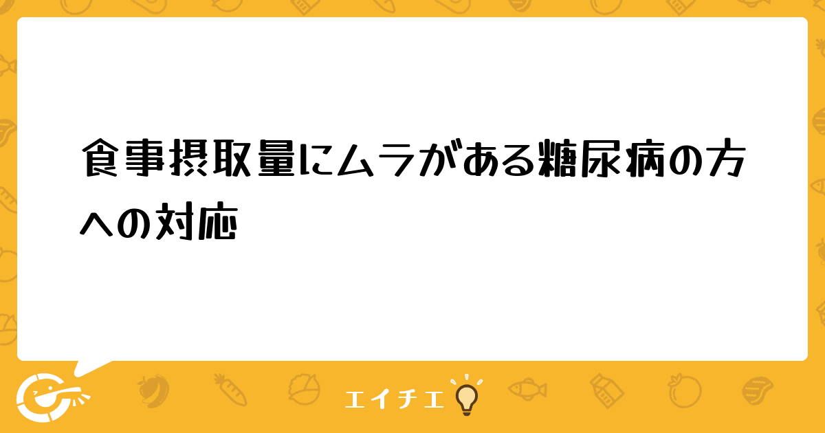 糖尿病を治したいといわれる方でおやつなし、ご飯も2/3で対応していて、療養食での管理はしていないのですが1300kCal提供の1000kcal前後食べている方です。ご飯を汁に入れて残したり、メインのおかずを全部残したりと日により全然違いますが、デザートはいつも食べています。声かけしても食べません。療養食で管理してもムラがあるので結局意味がないとの話になり、普通食で提供しています。何かできないかとは思うのですが、みなさんの施設では食事摂取量にムラがある方に対してどのような対応をしていますか?また、このような低栄養状態で糖尿病の方に対してどう対応しているか教えていただけると幸いです。よろしくお願いします。