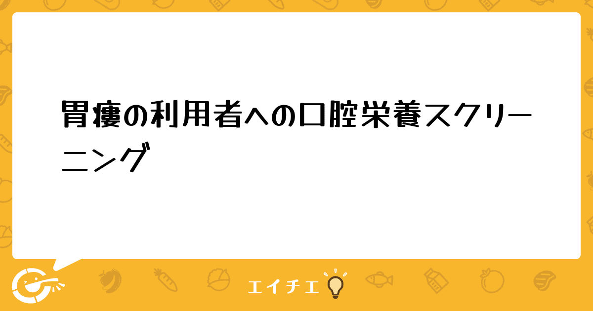 今回、通所リハビリにて胃瘻の方の利用が始まりました。その場合口腔栄養スクリーニングを行うことは可能でしょうか。また可能であれば食事摂取量の判断はどのように行ったら良いのかアドバイスを頂きたいです。