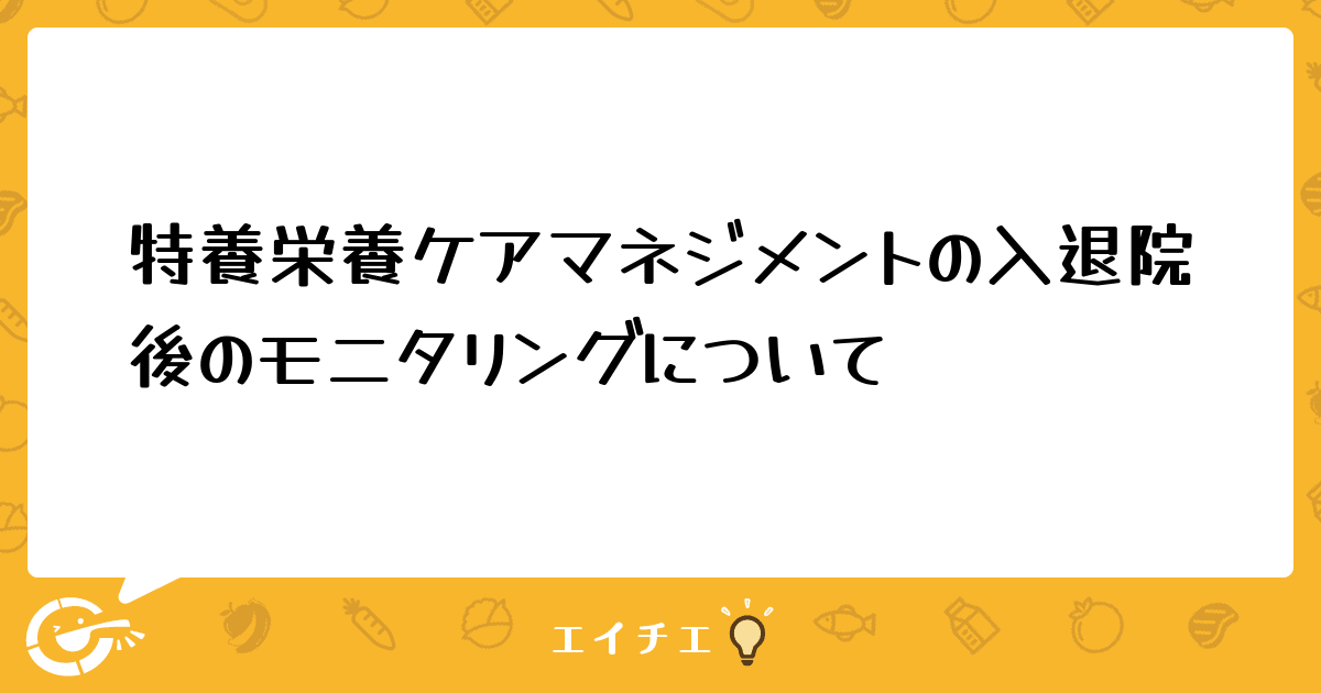 この度の質問は、栄養ケアマネジメントでのモニタリングについてです。