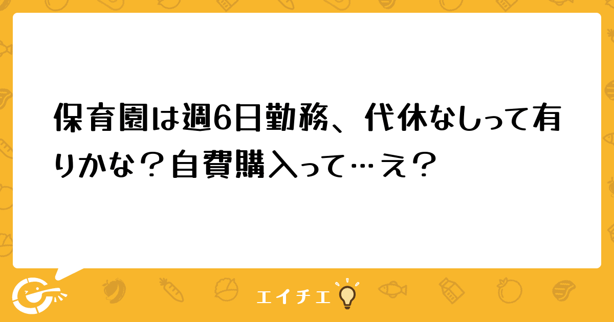 いろんな会社があると思いますが、戸惑うことばかりです。自費購入のものがあって困っている方や、何もないよ!!の方でも保育園ってこんな感じだと、いろんな話が聞きたいです。