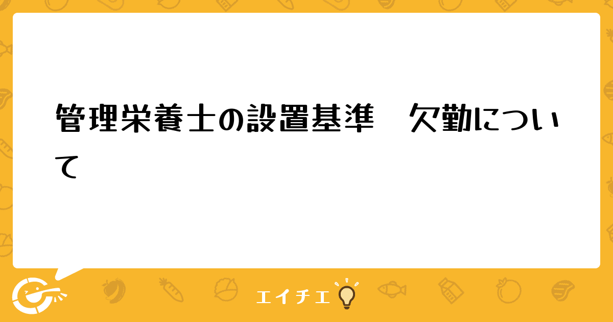 管理栄養士の設置基準で、欠勤する場合1か月だったか2か月以内の欠勤であればいなくても大丈夫とか届け出が必要だとかなんか法律があった気がするのですが、どの法律に書いてあったか忘れてしまい、知っている方教えていただきたいです。