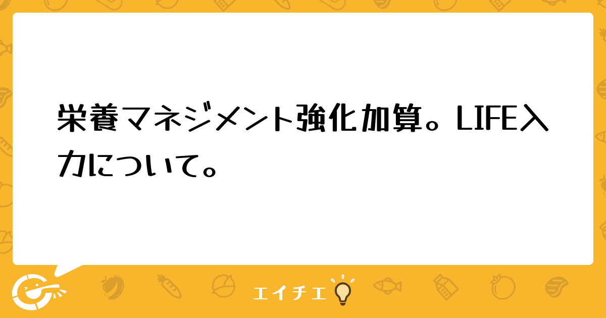 栄養マネジメント強化加算のLIFEへの入力についての質問です。