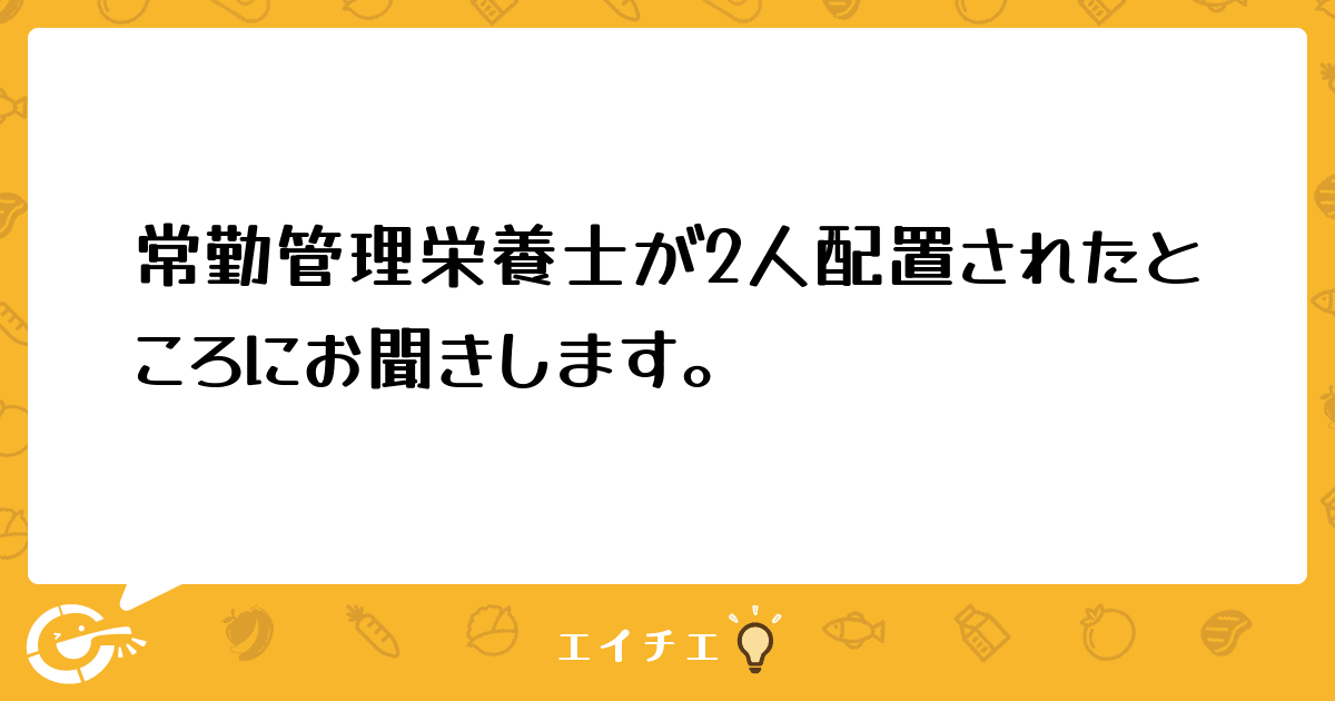 というのも、当施設は私(常勤管理栄養士)とパート栄養士(5時間勤務)がいまして