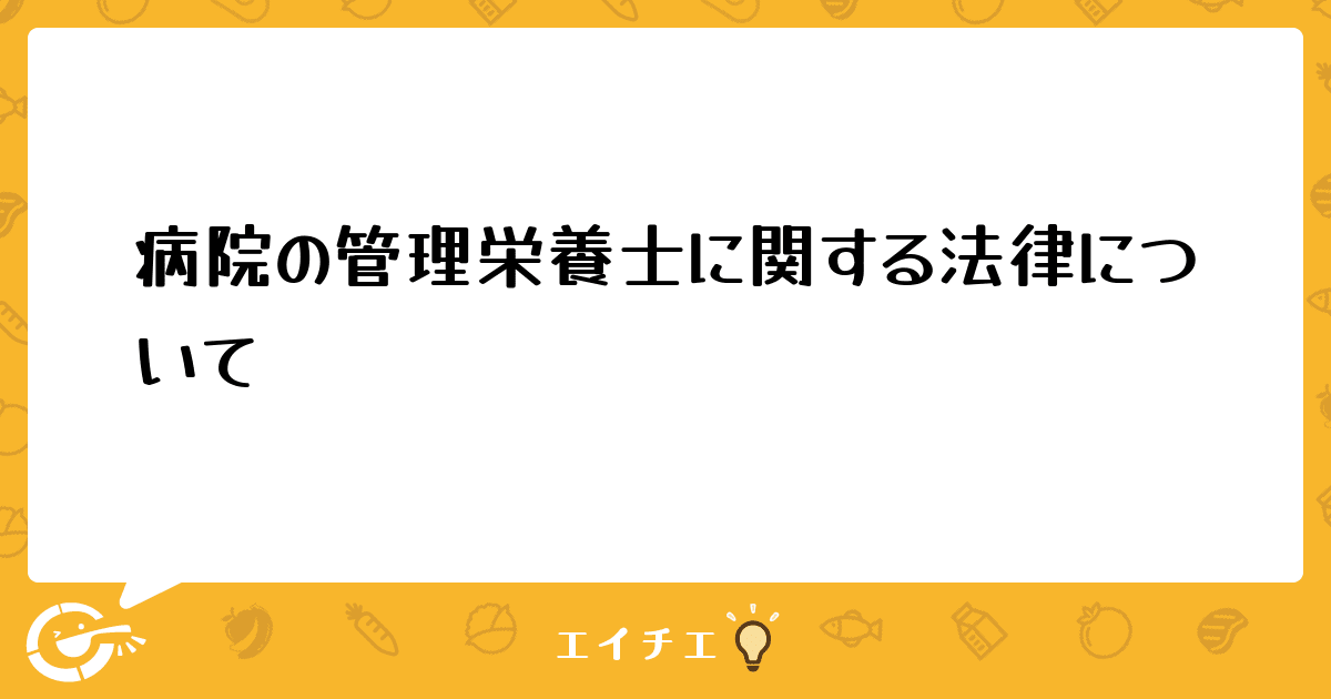 病院の管理栄養士に関する法律は医療法と健康増進法の2つのみなのでしょうか?