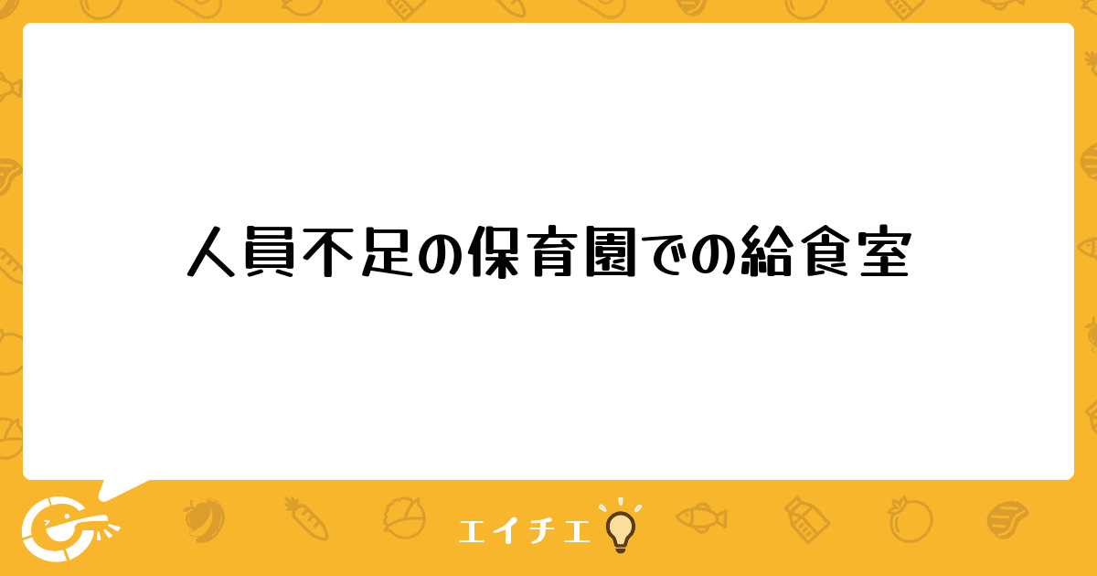 今勤務している保育園では保育士、保育補助の人数が足りておらず、給食室の栄養士や調理師が保育に入らなければならない状況です。