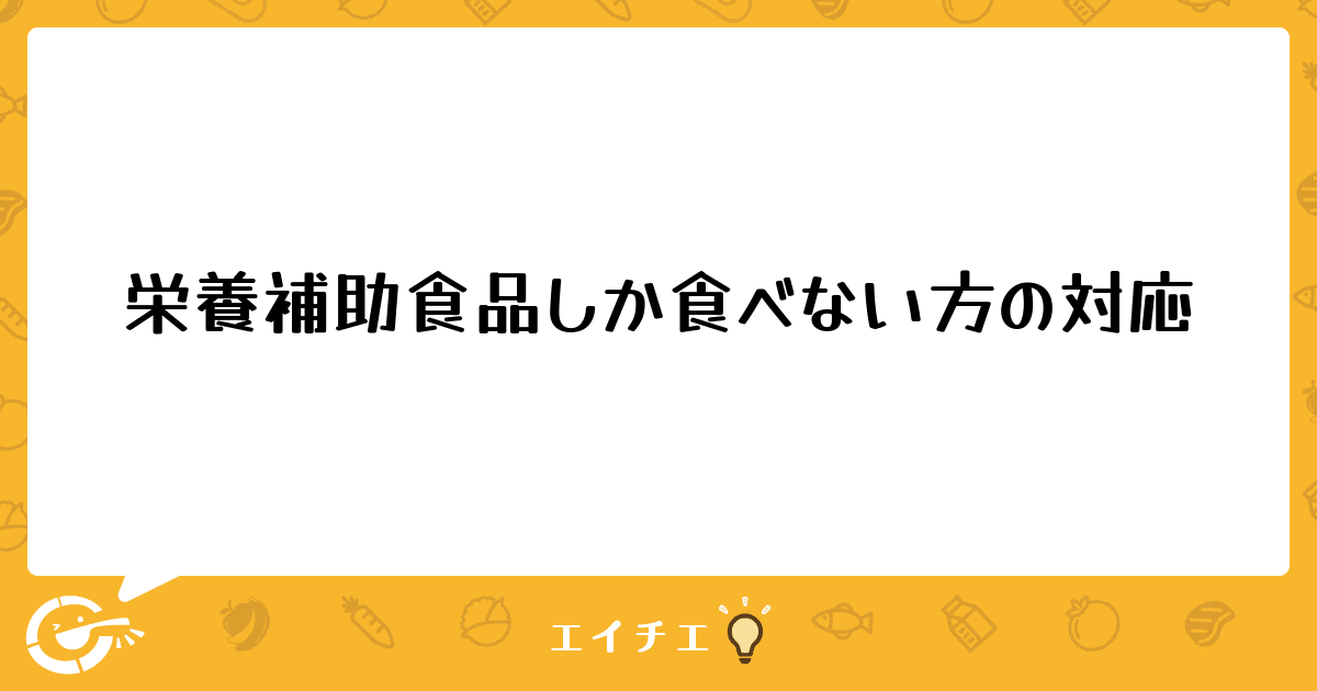 まとまらない長文で申し訳ないですが、もし栄養補助食品しか食べてくれない方の栄養管理したことある先輩方いましたら何かアドバイスお願いします。