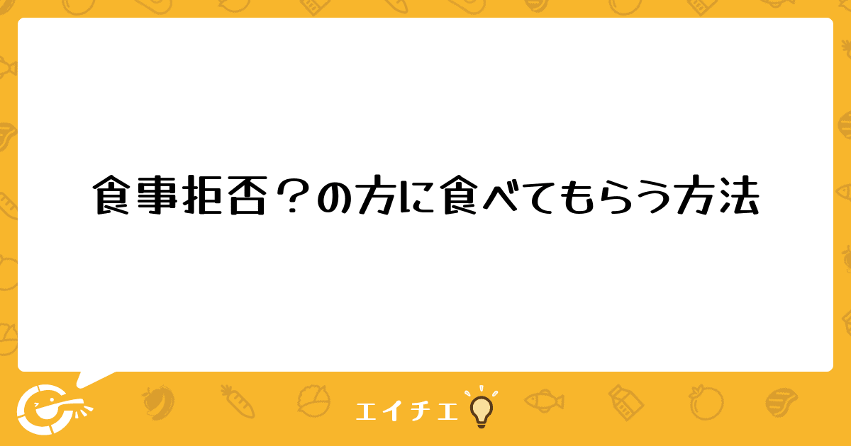 食欲がない、食事拒否がある方に食べてもらうためになにか良い方法はないでしょうか?アドバイス願います。
