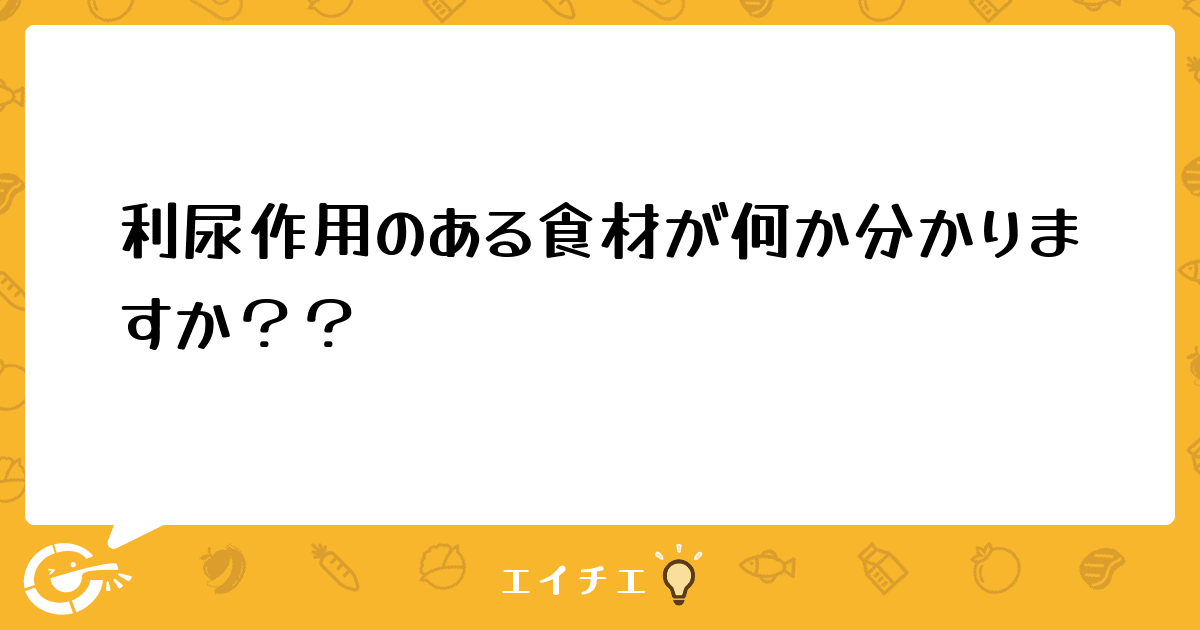病棟のスタッフ(60代女性)と話していて「利尿剤を飲んでいるけどおしっこが出ないんだよね~。利尿作用のある食べ物って何があるの~?」と聞かれましたがわかりませんでした…