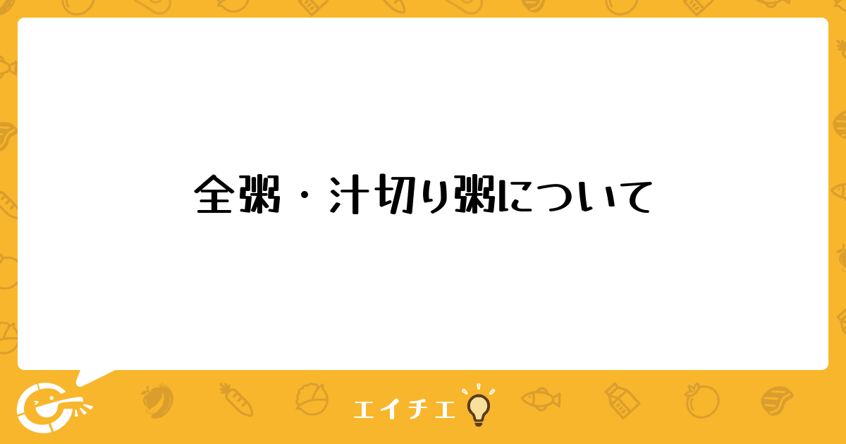 私の中では、全粥とは10分粥のことで重湯が入っていないものという認識なんですが、それだと汁切り粥と同じものになってしまいませんか?この認識が間違っているのでしょうか...。