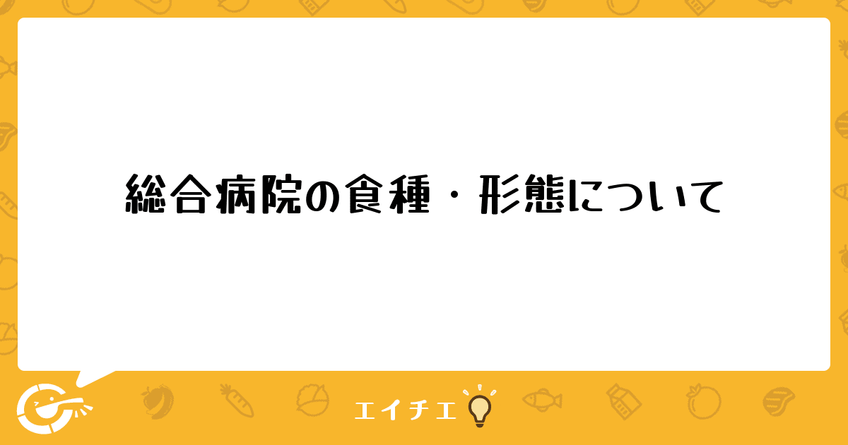 ある受託施設(総合病院)の食種や形態について、皆さんのご意見を伺いたく投稿しました。