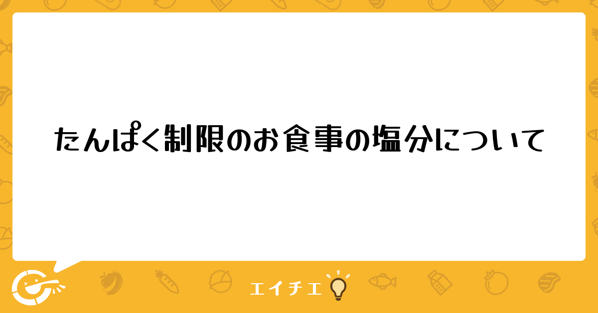 私の中ではたんぱく制限食は腎臓が良くない人が食べるので、塩分は低い方が良いと思っていたため、いきなり言われて戸惑っています。