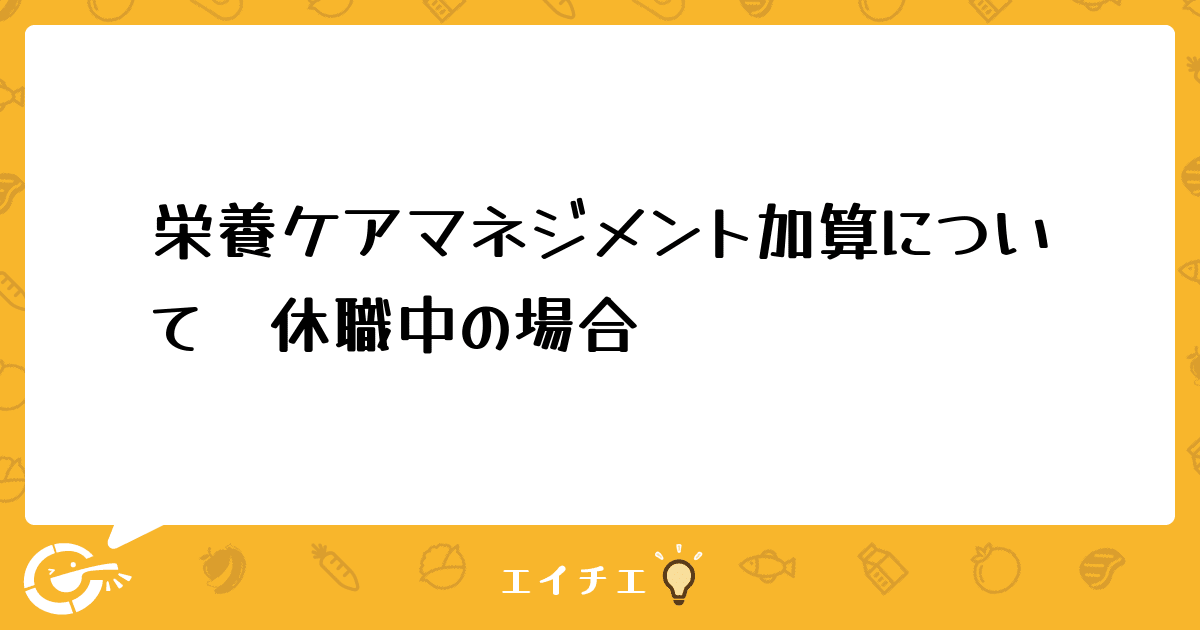 栄養ケアマネジメント加算についてですが、管理栄養士が休職状態である場合