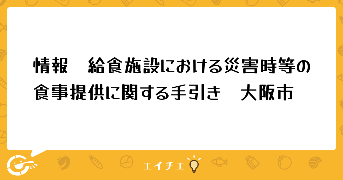 災害時の状況下でも全ての給食施設において継続的な食事提供ができるよう、マニュアルや食料備蓄の整備、研修や訓練の実施といった災害に備えた食の体制整備を支援するため、本手引きを作成しました。