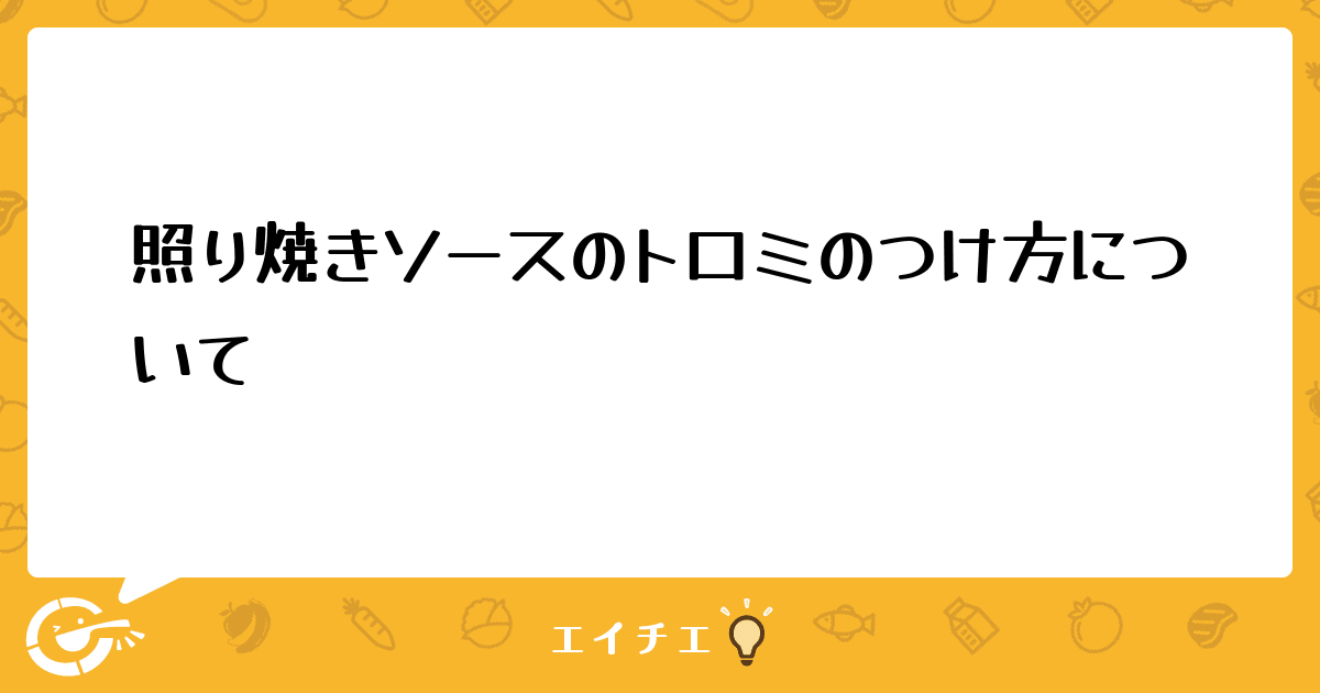 タイトルにある通りなのですが、照り焼きソースのトロミのつけ方に悩んでいます。