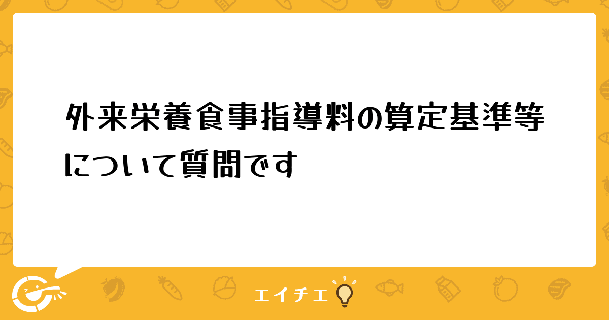 質問1)食事指導算定において、「食品構成に基づく食事計画案等を交付…」という情報を以前持っていた参考書やネット等で読みましたが、現在は「食品構成に基づく」は算定条件として必要無くなったのでしょうか? 最近の診療報酬をネットで調べてみましたら、この文言が出てきません。
