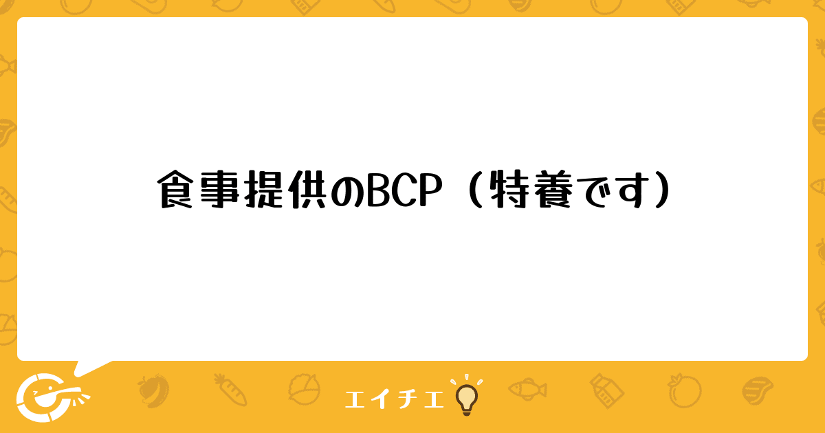 他の方の質問で「感染症のBCP]とありましたが、食事提供でもBCPを作成して訓練を行わなくてはいけないのですが、食事に特化したBCP訓練を行った施設はありますか?