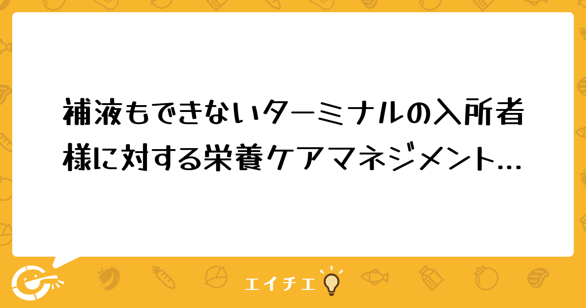 ターミナルで入所された方がいるのですが、経口はもちろんのこと、経管栄養も不可です。
