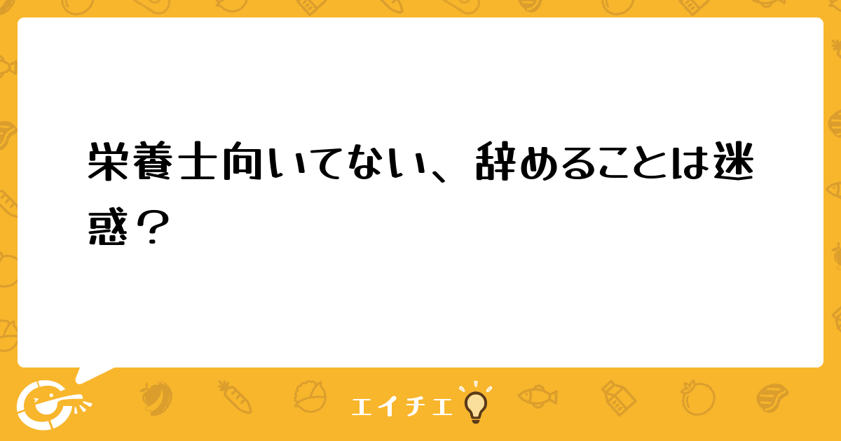 向いていないのかなと思うことも加わりもう栄養士はしないほうがいいのかなと思ってます…。