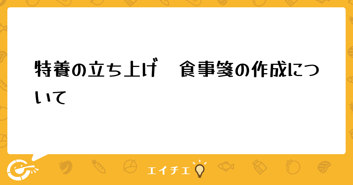 このたび特養の立ち上げに携わることになりまして、食事箋の作成について悩んでいます。