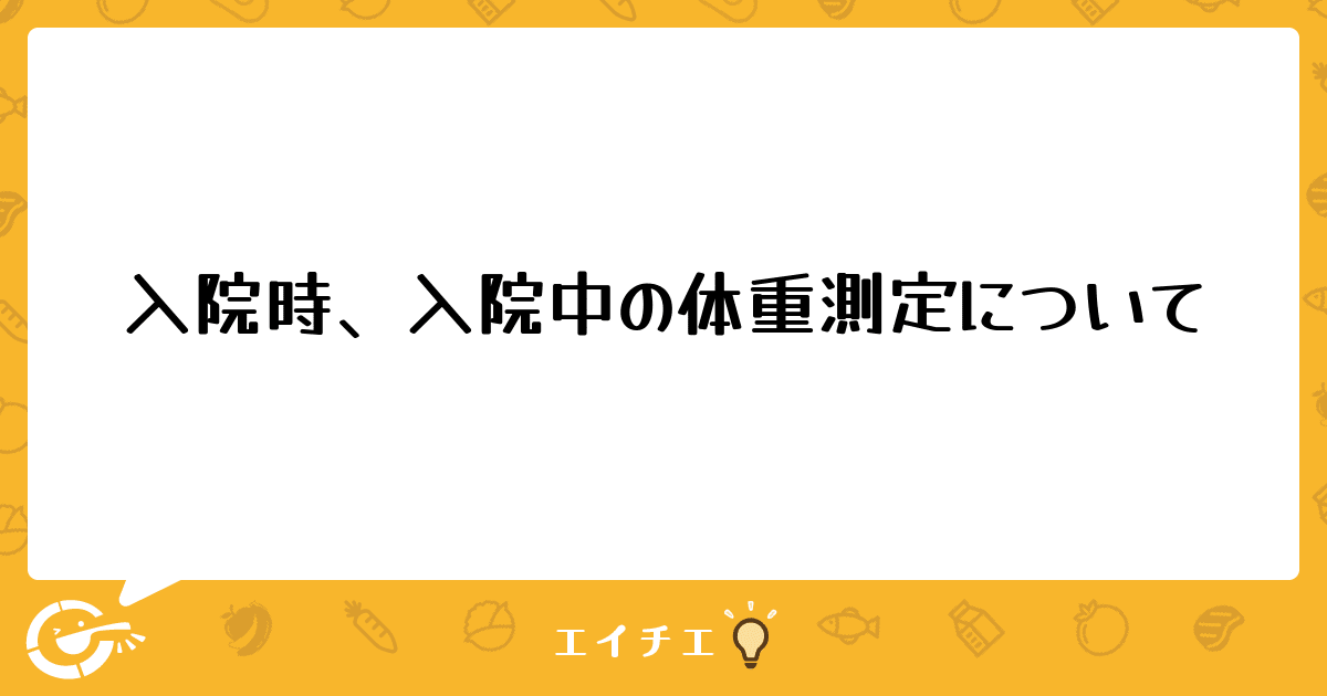 入院時や定期的な栄養評価時の体重はどうされているか教えていただけないでしょうか。