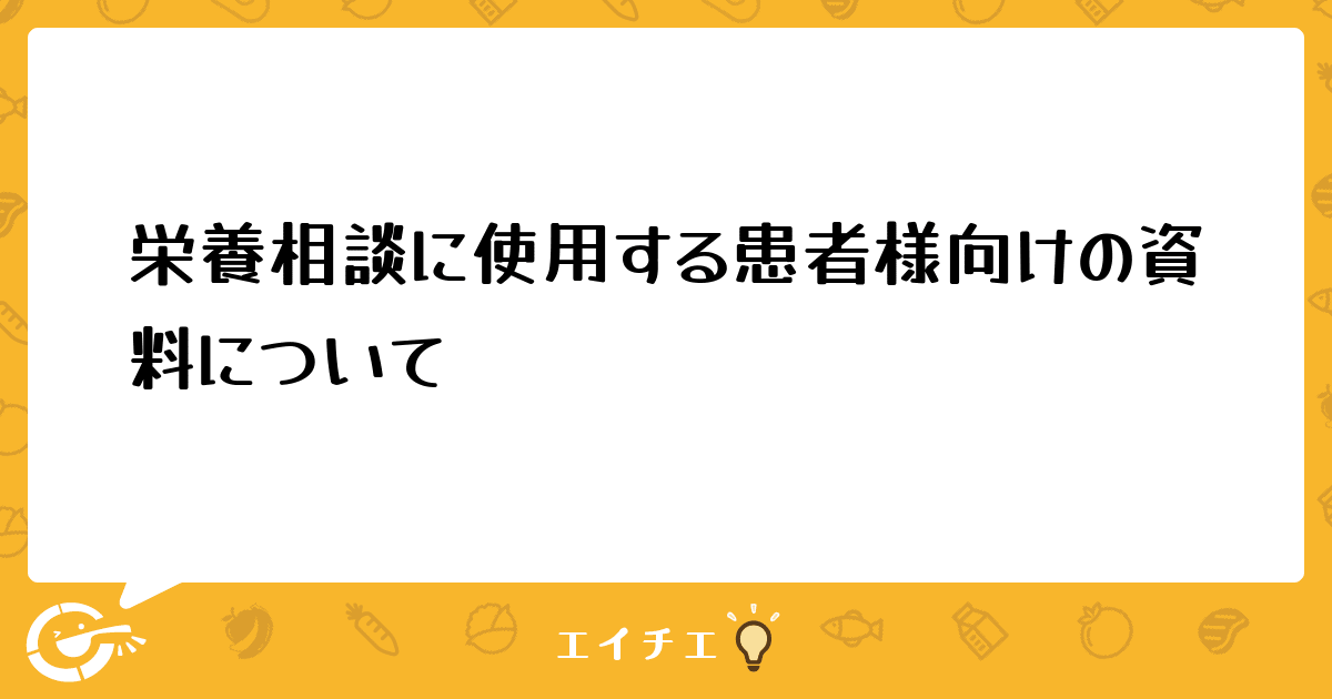 栄養相談に使用する患者様向けの資料について、もともとクリニックにあったMSDさんの資料をお渡ししていたのですが、在庫がなくなってしまい、配布資料に困っています。
