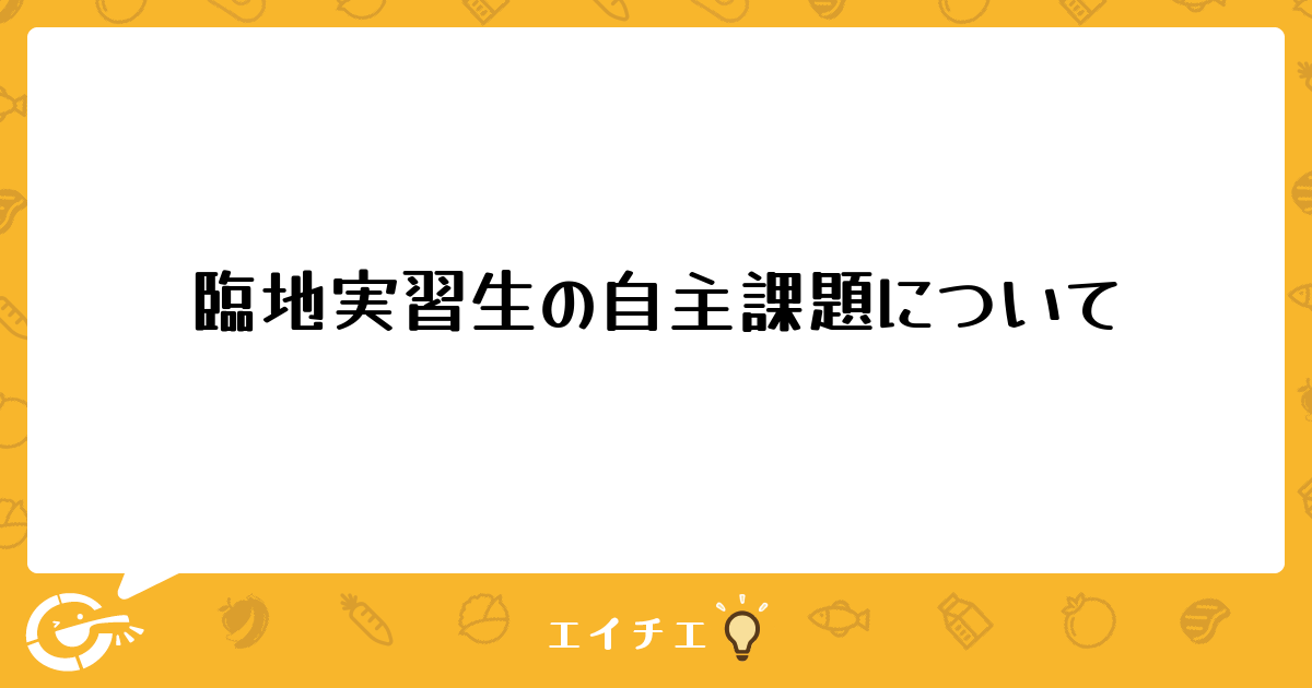 三年前より臨地実習生の受け入れをし始め、栄養士一人ということもあり、丸っと1週間実習生に付きっきりになり普段の仕事があまりに進まなくなるといういわゆる実習生受け入れあるあるなんでしょうが老健実習生の自主課題について質問です(長いわ)。