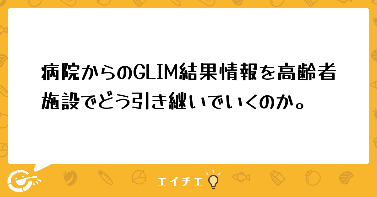 高齢者施設に入所された方の栄養情報にGLIM基準による栄養評価がありました。
