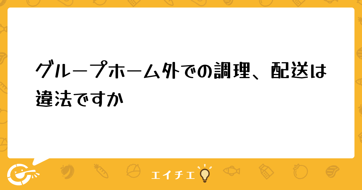 このような場合、どうしても グループホーム内で調理しなければならないのでしょうか。