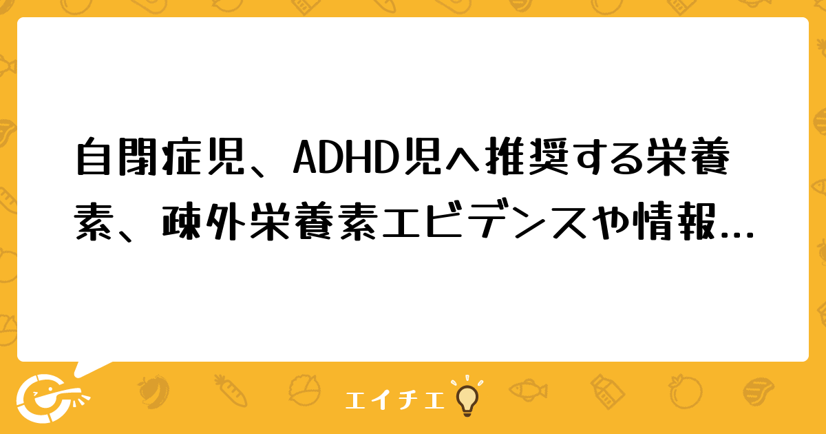 私は栄養士会入会済みで福祉事業部の存在は知っています(2拠点生活中で他の地域で入会済)ただ公的な会であり、今のタイミングで「自閉症児、ADHD児へ推奨する栄養素、疎外栄養素を知りたいです」という重大な見解になってしまうような質問回答をすぐに得ることはできないことも理解しています