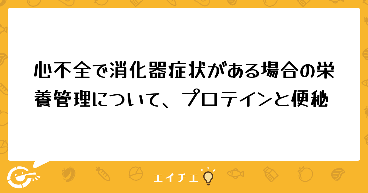 心不全で入院中の患者様で、フロセミド投与しても浮腫+で食欲不振、総蛋白低下のため主治医より補助食品追加の指示あり、たんぱく質付加のゼリーを摂取するも嘔吐あり中止、粉末タイプのプロテインを病院食に混ぜて提供するも開始してから便秘がひどくなっています。消化器症状は心不全で腸管浮腫・吸収障害が起こっているせいなのかと思っていましたが、消化器症状が出るのは決まって補助食品を使用した時。中止すると落ち着く…
