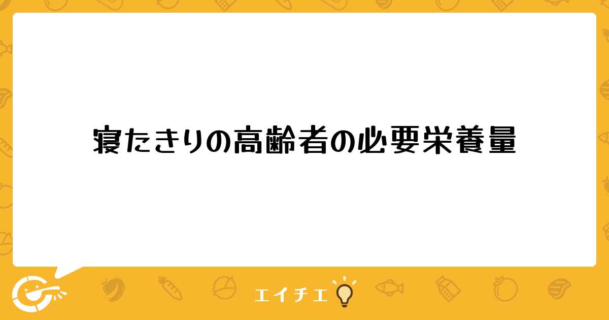 95歳女性BMI26 寝たきり 自分で寝返りできず、時々手を動かすくらい 食事の時のみ車椅子に離床 食事は全介助 食事形態は全粥ソフト食の方です。老人保健施設に入居中で、状態が変わった時のみ採血しているので、最近の血液検査はありません。目立った浮腫もありません。