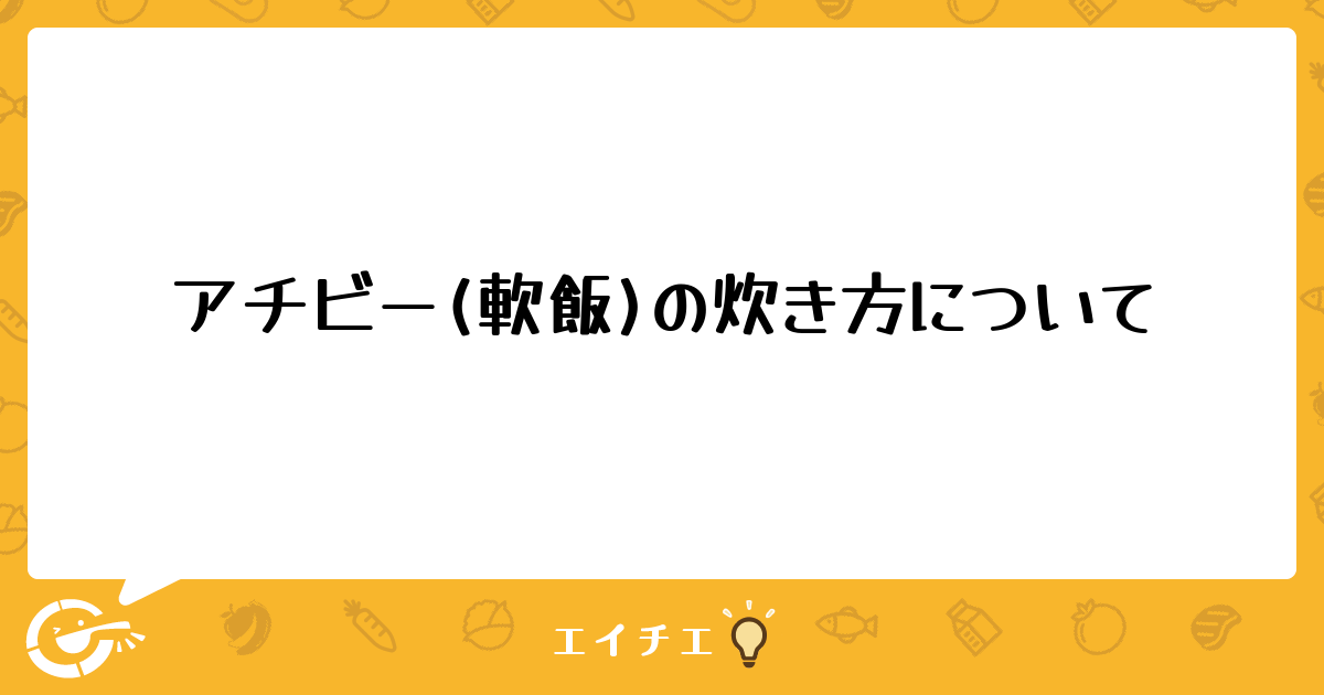 最近、主食の提供量を調整するためアチビー(軟飯)の加水量の調整を行いましたが病棟より硬いとのクレームがあり、他の施設・病院ではどのように炊飯しているのか教えていただきたく質問させていただきました。